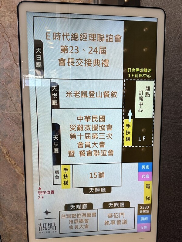11:15抵達「靚點喜宴會館(大坪林):新北市新店區北新三段219號2樓(電話:02-2918-8889)」