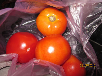拍了兩張相片後,可以看出陳女士已經急著想招呼下一位客人,我們也就回到外面計程車等候之處,在熱心司機的建議之下,坐船前往綠島,展開一小時的旋風式遊玩。可憐這幾顆蕃茄跟著我們一路奔波,坐了船又坐火車,一路上被摔了好幾次,終於在第二天伴隨著泡麵被我們吃下肚了。