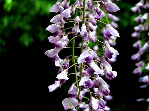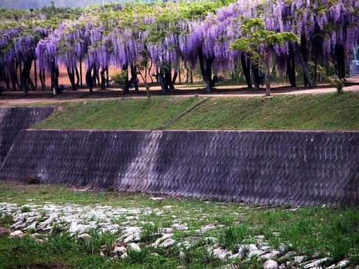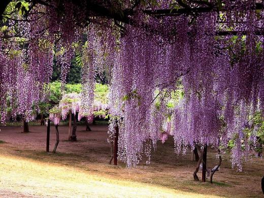 盛開的紫藤花像宣洩而下的紫色飛瀑般壯觀