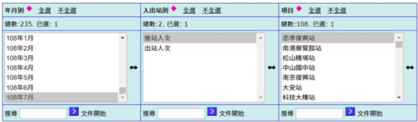 圖二 個月進出站人次撈取