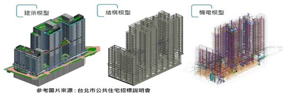 BIM以3D呈現的數位資訊模擬,可迅速從模型中提取數量資訊,也可從模型中有利於工程用料試算、成本預估、施工、綜合佈線衝突檢測、自動分析結構載重等進行快速修改,這樣不但加速了工程效率,也降低了複雜建築設計的困難度。亦可透過運用人工智慧(Aartificial Intelligence,AI)、擴增實境(Augmented Reality,AR)和虛擬實境(Virtual Reality,VR)整合設計並模擬真實工程將其具像化。同時將相關資訊來和時間或工序排程做連結,提供完整的數據資料,協助建築師、土木技師、結構技師、機電、承包商等不同的專業人士藉由所建構整合模型分享所有資訊,讓各方有共同有效的溝通語言來協助提高生產效率、節約成本和縮短工期。