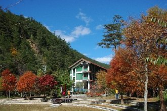 中橫宜蘭支線上的武陵農場,地屬台中縣和平鄉,楓紅美名堪與奧萬大比美,農場內各種的楓槭植物、落羽松、銀杏等,這會兒全穿上金黃衣衫,連櫻花樹葉也不甘示弱,以紅黃色彩魅惑遊人,使冬日的武陵峽谷一片繽紛。