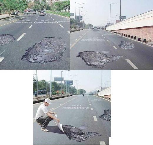 我不知道你會怎樣, 但是我一定會減速! 人們都減速並設法"跨過"這個洞 .....