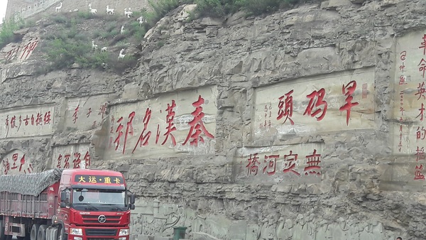 3、黃土風情園、石魂廣場:綏德汽車站--龍灣韓世忠圓環--新店--摩崖石刻