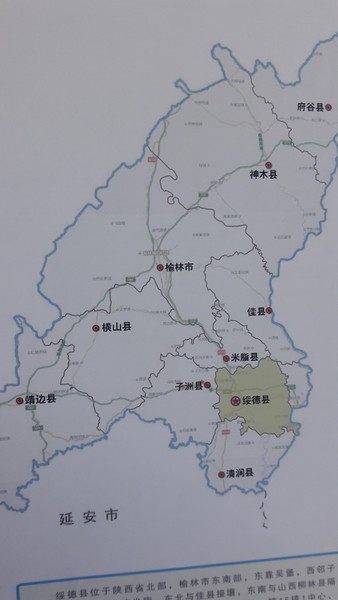 綏德縣位於榆林市東南部,東鄰吳堡,西鄰子洲,南接清澗,北連米脂,東北與佳縣接壤,東南與山西柳林縣隔(黃)河相望。縣境東西長56公里,南北寬51.6公里,土地總面積1853平方公里,其中耕地面積67.23萬畝;地勢東北高,西南低,海拔607.8米—1287米;境內為典型的峁梁狀黃土丘陵溝壑區,地貌基本結構是「三個為主」:即全縣土地以「峁梁溝坡地為主」,占全縣土地總面積的63.6%,「在峁梁溝坡地中以坡地為主」,占85.7%,「在坡地中以25度以上的陡坡地為主」,占51.24%;年平均降雨量486毫米,年平均氣溫9.7度,無霜期165天,屬溫帶大陸性半乾旱氣候;境內較大的河流有黃河、無定河、大理河、淮寧河、義合河。無定河和大理河繞城而過,在縣城東北角交匯,向南注入黃河。全縣轄15鎮1中心、338個行政村,總人口36萬,城區常住人口12萬,人口密度為每平方公里194人。城市建成區面積12平方公里,城鎮化率為40%,是榆林市規劃建設中的三個副中心城市之一。