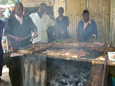 可能是因為有將近四成人口是回教徒的緣故,這裡的市場買不到豬肉,還好查德的羊沒有羊臊味(我去過的幾個非洲國家的羊都沒有羊臊味兒,真的),是個不錯的替代選擇,這裡有道國宴級的名菜「烤全羊」,是在羊肚子裡塞進烤雞、熟蛋、couscous(小米)、洋蔥等,再把整頭羊用特殊的烤爐去烤,是查德人招待貴賓用的大菜。