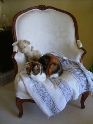 公寓很漂亮,而對貓咪沒有抵抗力的我,一頭熱的想和有些害羞的Finou玩耍,『過幾天比較不陌生了,就不會躲妳了。』Helene說,Finou三歲,一個多月大的時候被Helene收養,『也許是太早離開媽媽了,Finou不太習慣太親暱的撫摸。』