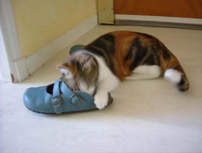 貓兒不理人是正常現象,我其實也沒敢奢望一開始就可以和陌生貓打成一片,不過Finou似乎先和我的鞋子交上朋友了。
