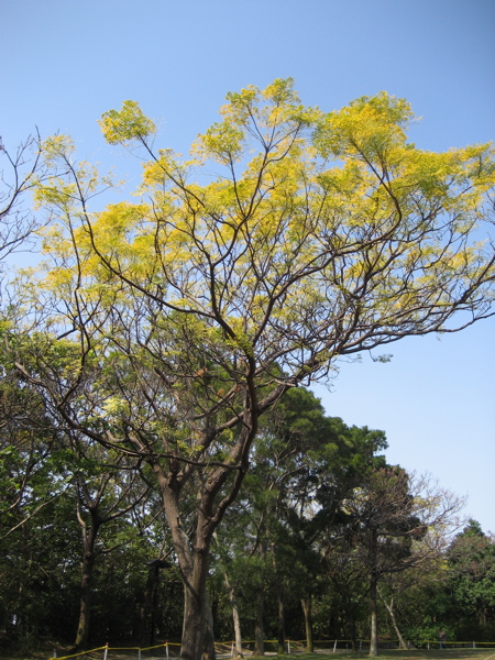台中今天天氣極佳,路過植物園,遇見一棵開花的樹,春天應該不遠了。