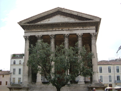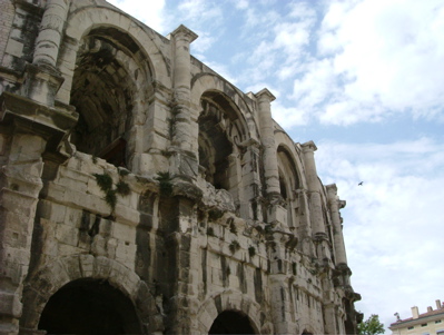 跟旅館的人問到旅遊中心的地點,拿到地圖後,先到遊客中心旁的羅馬神殿(Maison Carree,方屋?),我坐在台階上,左手邊的方向有個相當吸引人的新穎的玻璃帷幕建築,那是尼姆文化中心,一座與羅馬神殿相對應的方形建築物。而尼姆的圓形競技場是全世界七十多座羅馬競技場保存得最好的一座,我在舊城的小巷弄裡隨意逛著,買了個沙威瑪,發現這東西很難邊走邊吃,於是在公園溜冰場旁找個位子,看著許多活力充沛的小孩溜直排輪、滑板,剩下的一點麵包,就餵了一旁虎視眈眈的鴿子。