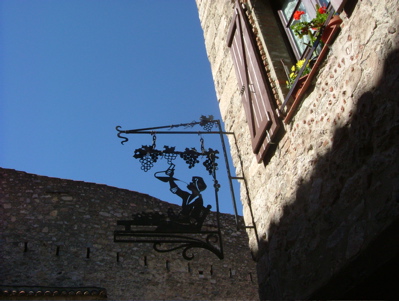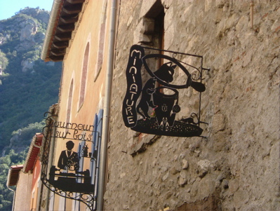 漫步於Villefranche-de-Conflent的街上,會發現一個有趣的特色,街上商店的招牌,全是鏤空鑄鐵,花樣別緻美麗,一眼就可以看出店家經營何種行業、販售何種物品,甚至連公營的郵局也用一隻鴿子刁著信件的圖樣當招牌,讓人有個衝動,非在這個郵局寄張明信片或是信件包裹什麼的。