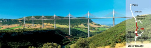 橋的正下方,有個免入場費的展示館,展覽一些關於大橋工程的種種資料,並且販售一些相關紀念品。這橋太過於龐大,若想一窺全貌,得有些距離才行,離開Millau之後的D991公路上,有幾個地方都可以看到大橋全景。