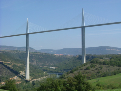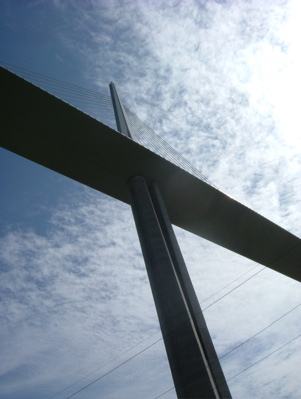我本來是計畫開車走一下這大橋的,因為這橋的橋身離地面245公尺,號稱可以讓人把車開到雲端裡,不過當我走在D997公路上,前方出現這座龐然大物,看得人脖子都累了,而當天天氣晴朗,一朵雲也沒有,沒可能體驗在雲裡開車的感覺,考慮到smart個兒太小,也許會暈橋,或是被一陣風吹到Tarn河谷裡去,於是打消原定計畫,在橋下看看就好。
