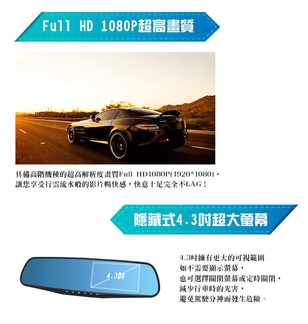 17Life獨家下殺!!免千元超高CP值,1080P高畫質,4.3吋寬螢型,140超廣角,可直接安裝