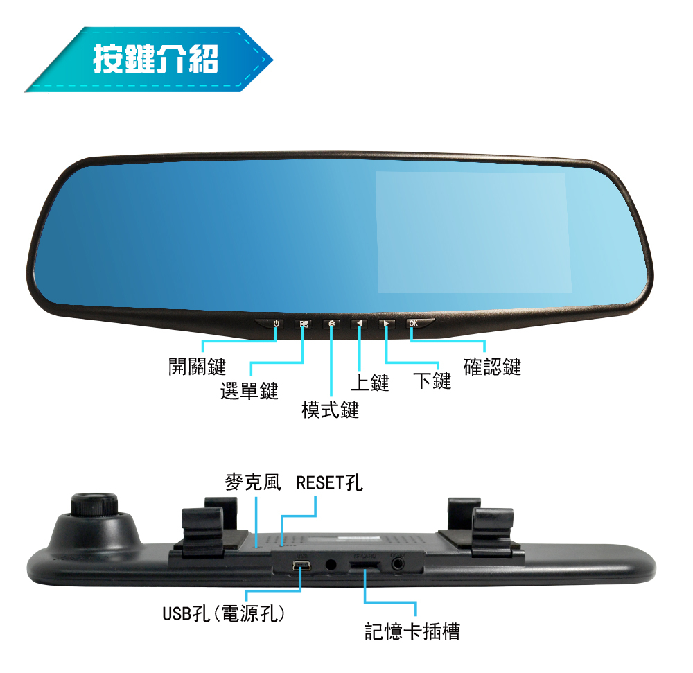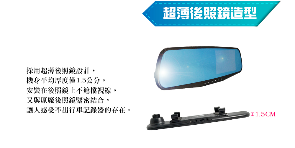 超薄後視鏡造型,可直接安裝後視鏡上,不佔空間,不影響行車視線