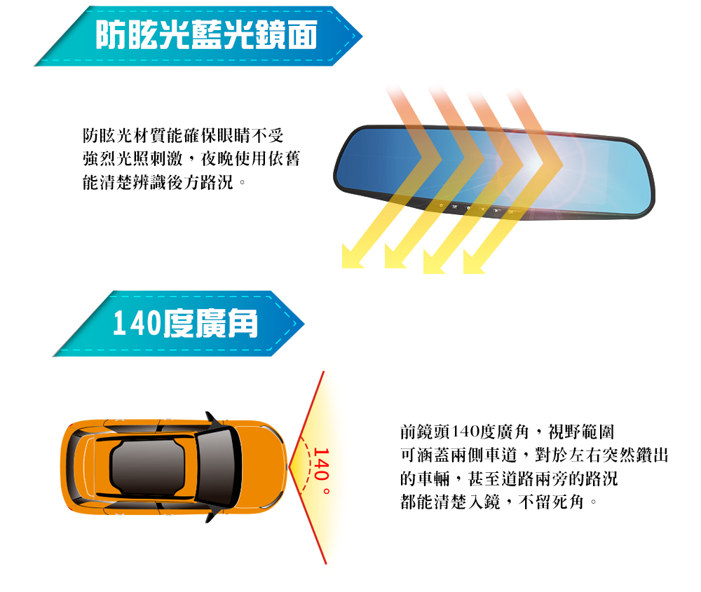 防眩光鏡面,增加夜間行車安全