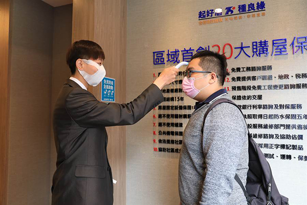 ▲因應疫情,目前民眾前往接待中心看房皆須接受測量額溫、消毒等措施/圖片由業者提供