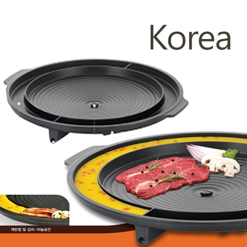 直殺成本韓國最新烤盤為特殊處為烤盤裝設旋鈕,鬆解時是烤肉排油盤,可將不必要之油漬排出,且烤盤的鋁合金材質可讓熱度均勻散佈,不斷熱,不沾鍋。兩側還有把手設計喔!!