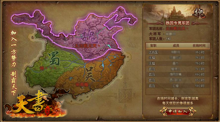 在線時間越長官階越高,在各勢力就越吃香。