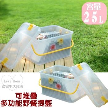可堆疊設計 多功能用途 野炊野營適用 25L大容量 種類 收納箱 收納盒 收納籃類型 收納籃主材質 塑膠組裝方式 不需顏色 透明內容物 1入容量 25L尺寸 約465 315 265mm1產" />