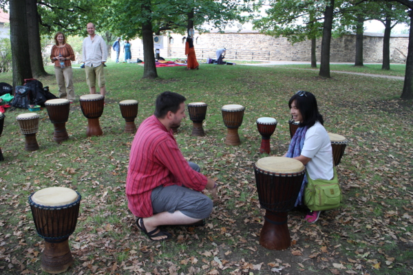 帥哥邀請下和他來ㄧ段非洲鼓的合奏(感謝帥哥的指導)