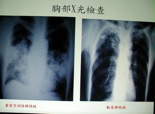 照片左邊是年輕人的肺,已被結核菌「吃」掉一大半
