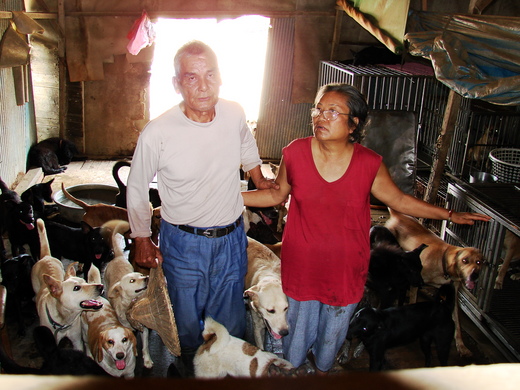 破屋,在溪邊照顧150多隻流浪狗,鍾媽媽因糖尿病疏於治療,前年