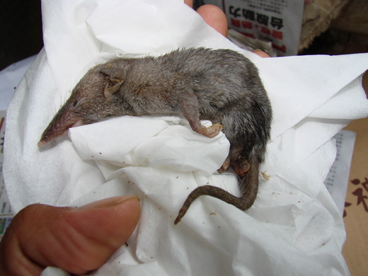 只見一個大貓嘴裏叨了個小錢鼠,