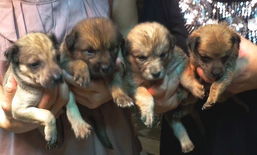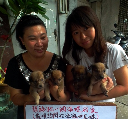 四隻小狗兩公兩母都是台灣混種土狗,被送到台南市流浪動物研究協