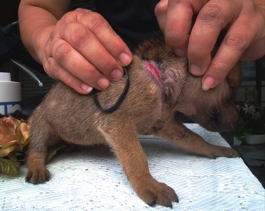洗整理,現在都很可愛。遭橡皮筋緊勒腋下、脖子的小狗已無大礙,