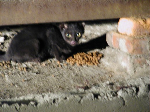 是隻黑色小貓,竟坐在眼前,靜靜地,