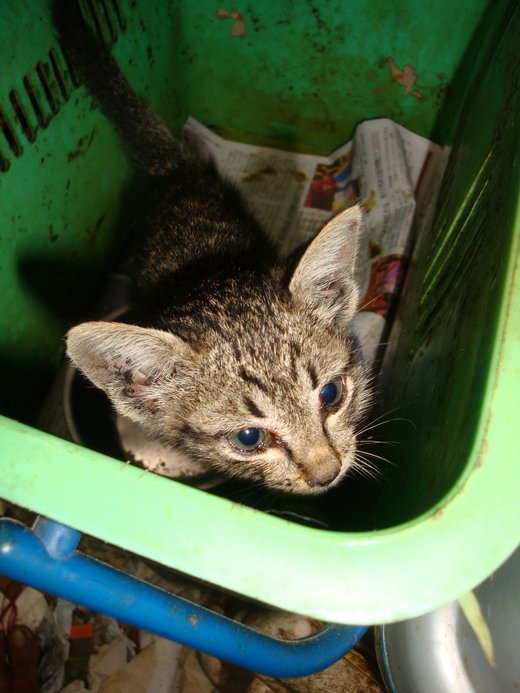 兩週前逃過一劫的小貓,病好了,只是,沒時間好好照顧她