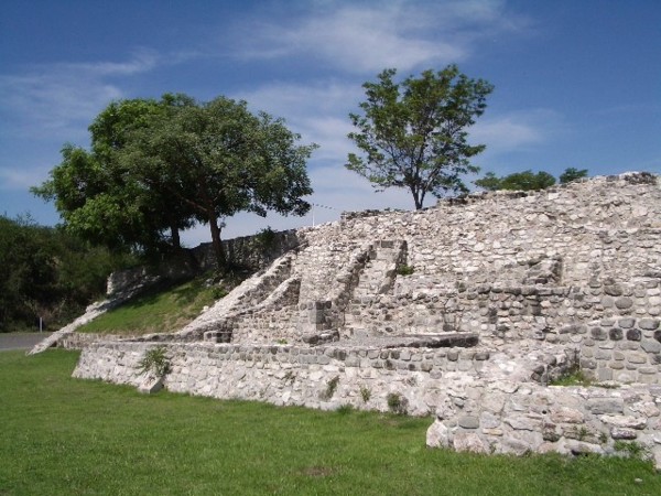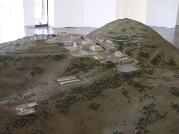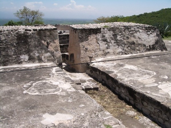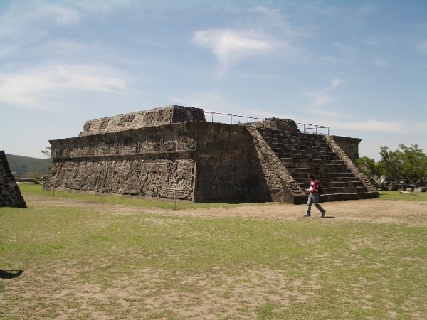 根據考古學家的研究,中美洲在西元前1200年到西元1519年(西班牙人Hernn Corts來到中美洲)的二千七百多年之間,曾經有過不少輝煌的文明,包括了一般人所熟知的馬雅文明。Xochicalco文明比馬雅文明還晚,時間大約在西元650年到900年之間,當時正是群雄併起的戰亂時期。因此,它捨棄了不遠之處的湖濱[圖1],反而建在丘陵的頂部[圖2],主要是因為防禦的考量。不過,水源如何解決呢?幸好當地雨量充沛,築了蓄水池[圖3],透過完善的集水及排水系統,解決了這個問題。估計全盛時期大概統治了二萬人口,古城是他們的政治、商業及宗教中心。