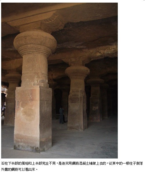 象島多野猴,不傷人。上山石階步道120級。早年居民打漁維生,今俱於兩旁做小販生意。廁所收費,約2角,如早年大陸(2008年,我訪荷蘭,發現荷蘭的公廁也是收費的)。山上有一石窟神廟,已列為聯合國世界遺產。神廟約建於1300-1400年前。當時以手工開鑿,自上而下、自外而內。工人、器具、糧食俱須由孟買運來。神廟大門必朝東西,大廳中央內供一圓石柱,象徵力量。東大門外有一聖牛祭壇,朝向廳內神壇。開鑿之初,試了三處入口,均失敗,半途而廢,尚留遺蹟。完成後成為印度教信仰聖地,可謂海上聖境。後因土石流崩塌,毀去東大門,遂不再被認為是神廟,遂而荒棄。後葡萄牙人來,覓此做為軍事堡壘,置大砲,守孟買港。以此神廟為彈藥倉庫,毀去石柱下截,以便運輸,並以神像做為練槍標靶,故神像毀壞嚴重。後葡萄牙女王嫁英王,以孟買為嫁妝,遂歸英國。英國未用此處而荒棄,今為世界遺產。