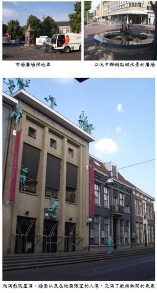 市場廣場。前一晚上正逢2008年歐洲足球賽,荷蘭隊贏球,舉國歡騰。市民聚集在市場廣場看球、狂歡,留下了大批垃圾。 一早,清潔車正努力清理。