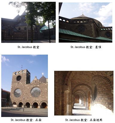 St. Jacobus教堂,座西朝東(入口在東),和一般的教堂座東朝西(入口在西)的座向不同。