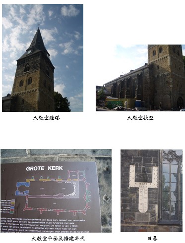 大教堂就在St. Jacobus教堂的對面,形塑了市場廣場。大教堂大約興建於西元1000年,歷經5次擴建。擴建範圍以不同顏色表示,嵌在牆上。另一面牆上則有一具日晷。