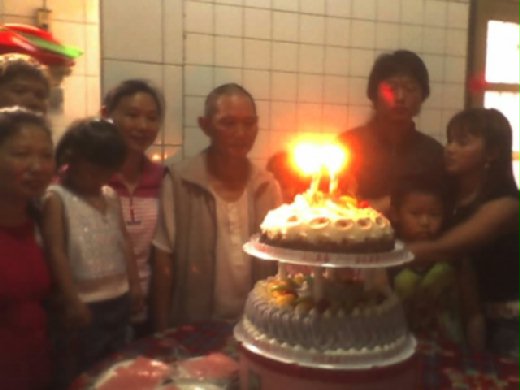 今天是我阿公生日 生日大家唱生日歌 最好項的是 大家都把 蛋糕拿來炸人