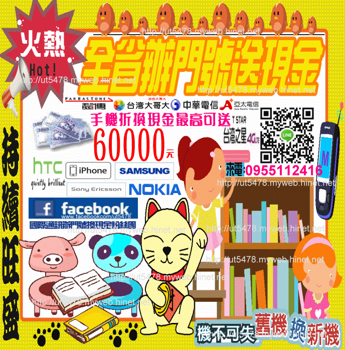 辦門號換現金 - 台灣(貼補)15000元,每個月專案不同請來電詢問!!