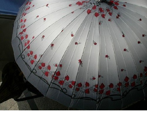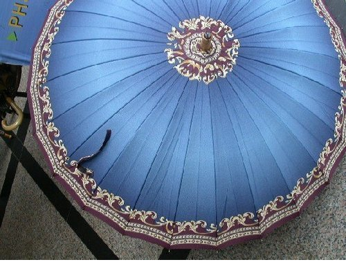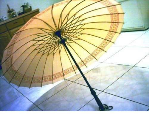 請看附圖中的傘. 漂亮嗎?它 有二十四支傘骨,與傳統的十二 傘骨不同, 它很耐用, 就算完全外翻也能若無其事翻回 來,像布料裡的萊卡一樣。 並且,它不 吸水不沾水,即便下豪雨,進屋 前在樓梯間一抖, 水就都抖掉 了,一點兒也不費事。