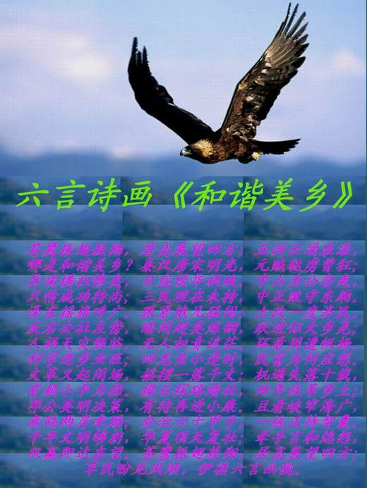 蒼鷹振翅敖翔,居高展望四方;五洲雲湧浪滾,