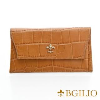 包包推薦【義大利BGilio】鱷魚紋牛皮西式信封長夾-活動式內夾層-駝色(1477.328-04)