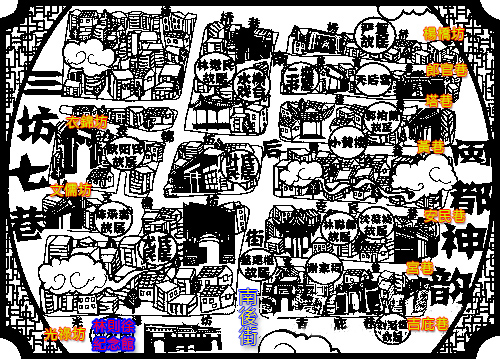 三坊是:衣錦坊、文儒坊、光祿坊;七巷則是:楊橋巷、郎官巷、塔巷、黃巷、安民巷、宮巷、吉庇巷。另外還有一個南後街為其中南北向的中軸主幹道,三坊七巷分列於這條大街的西東兩側。