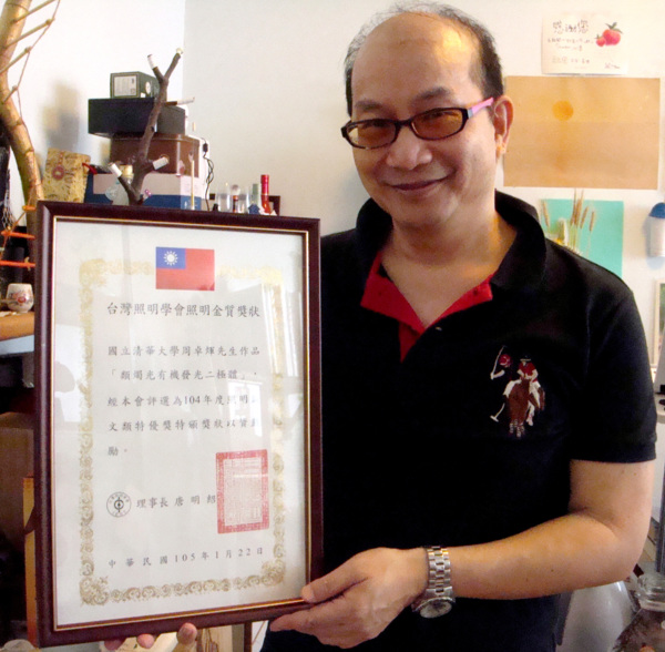 去年底,此項類燭光技術獲得國內照明金質獎與國際暗天協會照明設計獎,肯定他的技術有機會在環境、生態、健康等方面表現友善,並能還給夜空該有的黑,而最後廢棄物處理的時候也沒有會對環境有害的成分(例如日光燈含汞,會傷害環境),因此很受肯定。