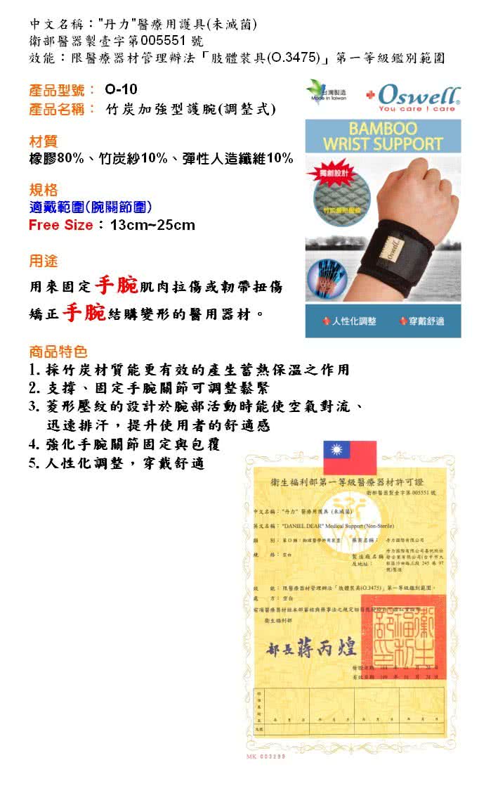 知識【oswell】O-10竹炭加強型護腕-可調整鬆緊(固定肌肉拉傷或韌帶扭傷)愛用送禮運動保健-代餐