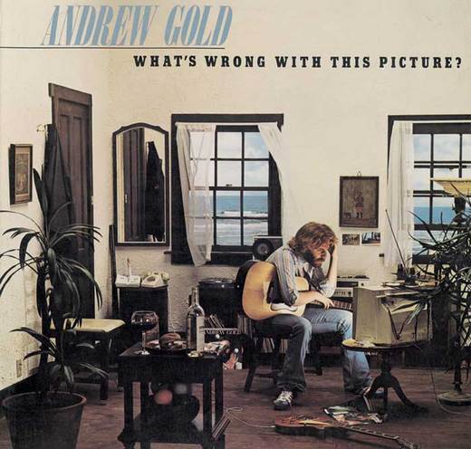 This is an LP cover from Andrew Gold. Mr. Gold claims there are 32 things wrong about this picture, but I haven't found all of them by far ... I'll list some of the most obvious : the drapes are moving in front of the closed window, the horizon is different in the two windows, not all legs of his chair touch the ground ... Now it's your turn. (source)