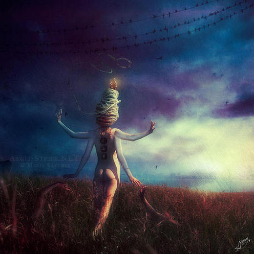 流眸顧盼早將雙臂斷去 , 心