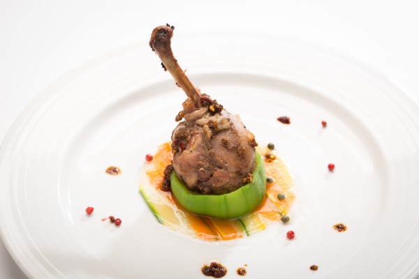將腿骨用法式來呈現.融合了許多調味.簡約的擺盤。 |