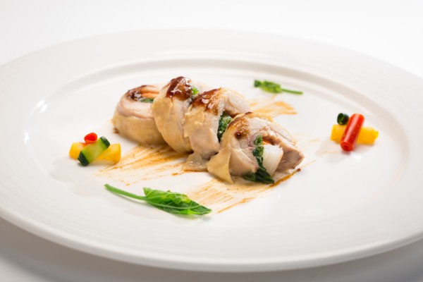 1. 利用清蒸的方式把雞腿肉的甜味和蔬菜味鎖在雞肉捲裡。 2. 只需要少許的調味就能襯托出甘甜及蔬菜的香.淋上特製白芝麻油。 3. 簡單的呈現精緻的做法。 |