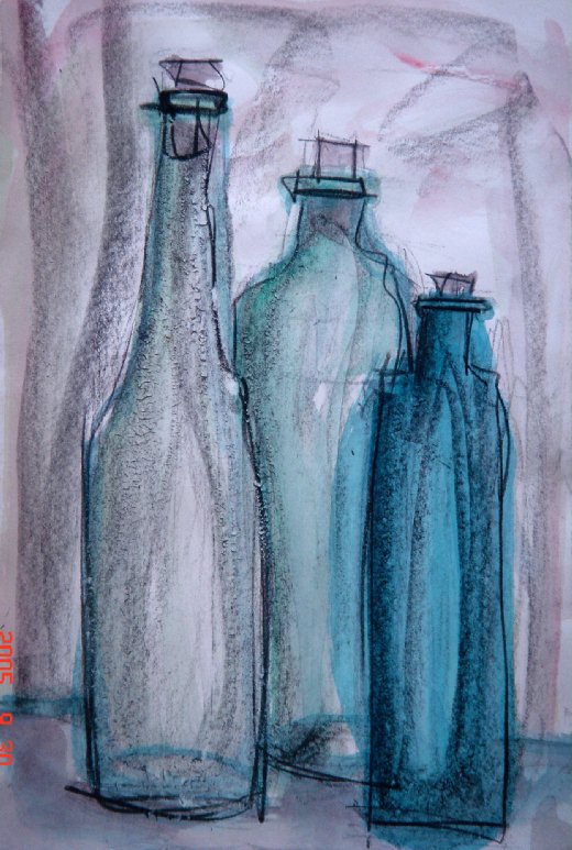 我很愛畫瓶子尤其是用炭精筆一筆畫完
